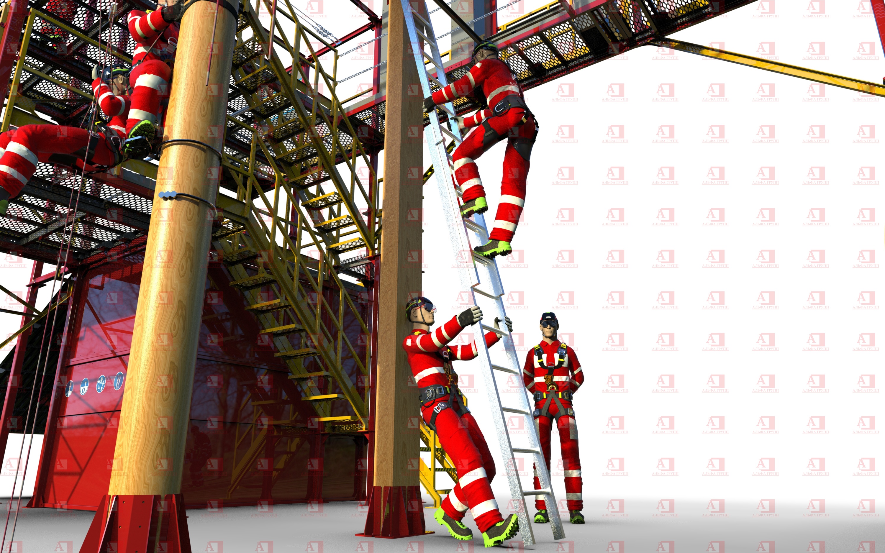 •  Выполнение работ с приставной лестницы, с применением гибкой анкерной линии для обеспечения безопасности;